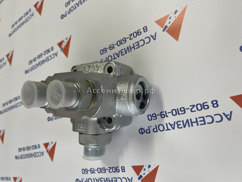 Работает в системе гидравлического оборудования автомобиля для распределения потоков гидравлического масла. Используется при установке на ТС гидровыводов, под возможность эксплуатации в сцепке с самосвальным грузовиком прицепа-самосвала. Устанавливается на магистраль подходящую к гидроцилиндру самосвала. Управление пневматическое из кабины ТС.